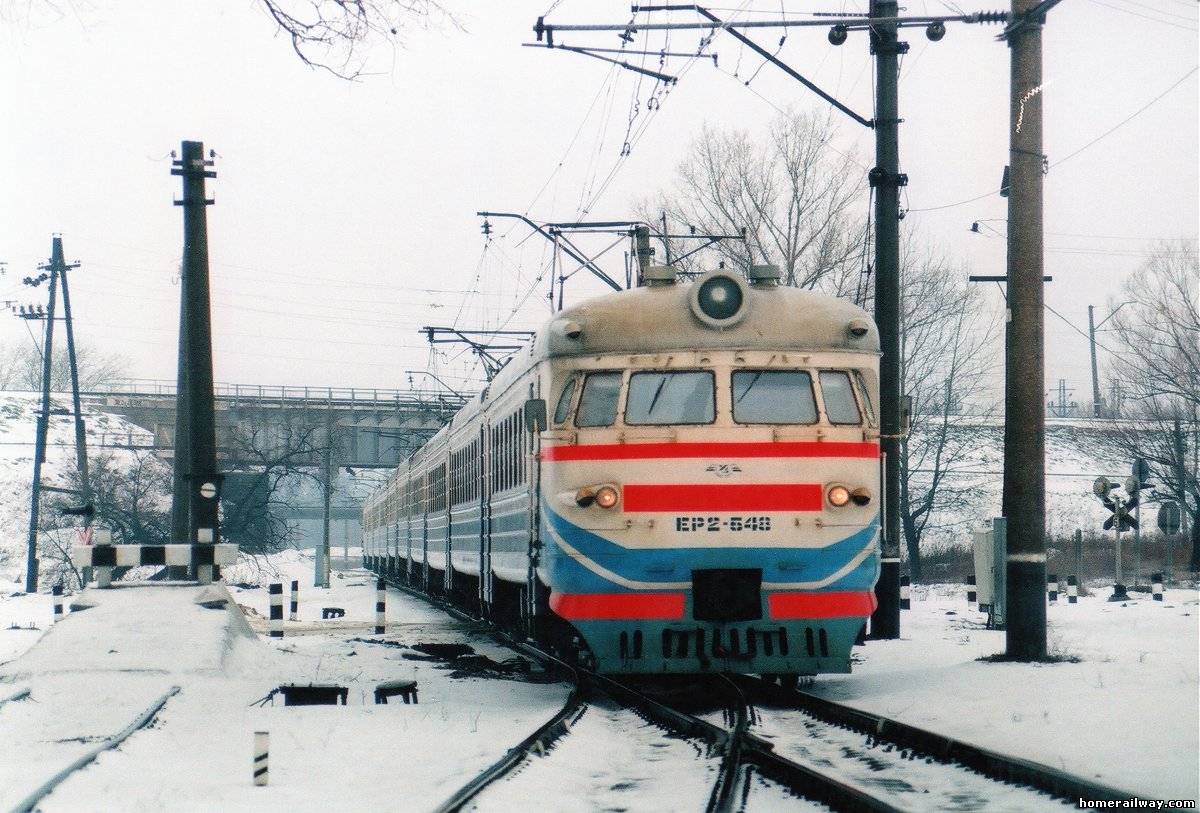Электропоезд ЭР2-548 прибывает на блок пост 6 км., ЮЖД, г. Харьков