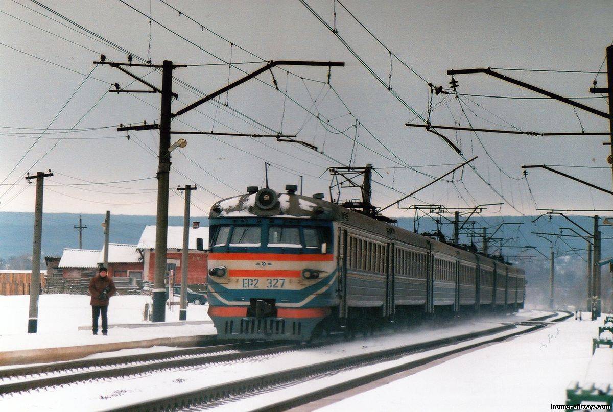 Электропоезд ЭР2-327 прибывает на о.п. Удянская, перегон Жихорь - Основа