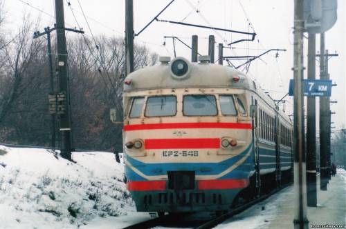 Электропоезд ЭР2-548 прибывает на блок пост 6 км., ЮЖД, г. Харьков