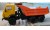 камаз-55111-01 с двумя запасными колесами на козырьке кузова с оранжевой кабиной и кузовом